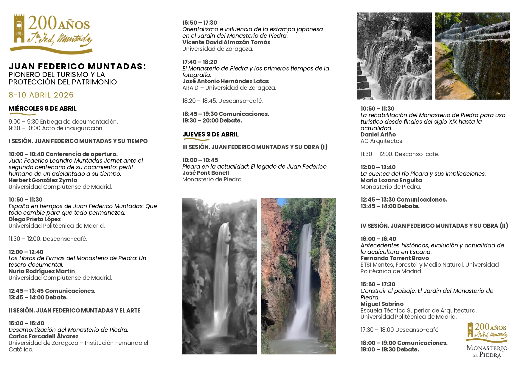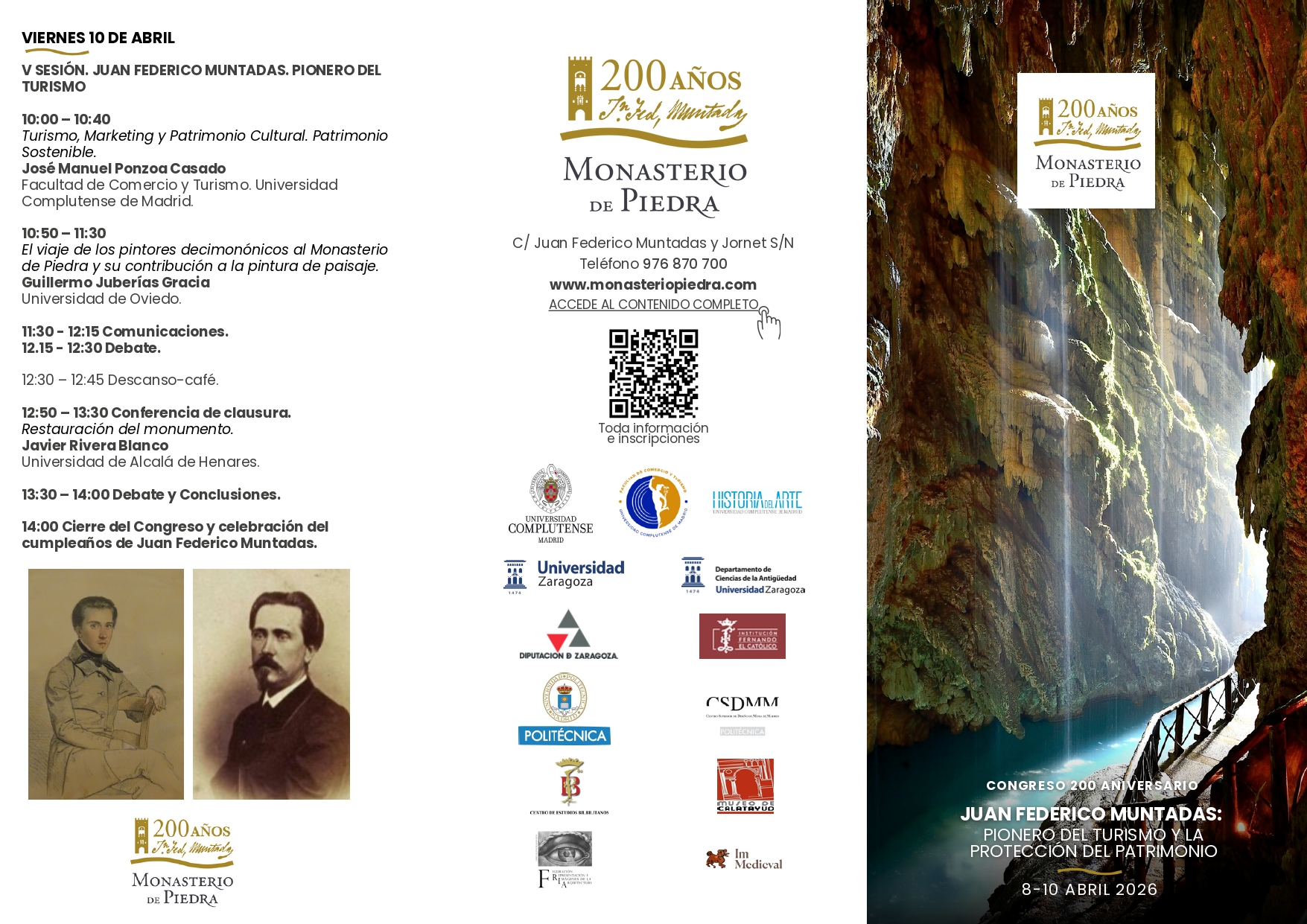 Os presento el programa del próximo congreso multidisciplinar que conmemora el 200 aniversario del nacimiento de Juan Federico Muntadas (1826-1912), organizado por el Monasterio de Piedra y la Institución Fernando el Católico -entre otras instituciones-, bajo la dirección de los profesores Herbert González Zymia y Diego Prieto López de la Universidad Complutense de Madrid.